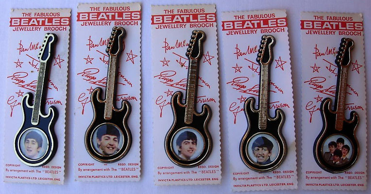 A complete set of 5 original guitar brooches from the sixties (group + all four members)